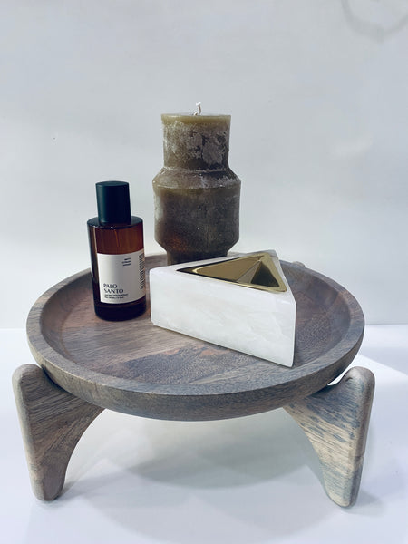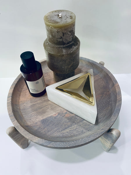 Elevate your countertop with this round mango wood serving tray, thoughtfully designed on a sturdy stand for a subtle mid-century modern touch. The warm grain of the wood brings natural texture to any space, making it perfect for serving small bites or displaying everyday essentials in the kitchen. Whether styled with fruit, spices, or your favorite ceramics, it adds effortless charm and timeless functionality to your home.