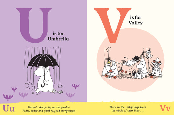 A beautifully illustrated alphabet book set in the iconic world of Moominvalley, filled with quotes from the Moomin world, and illustrated in the distinctive Moomin style.