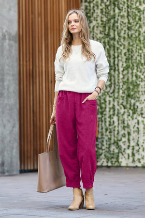 An easier pull-on rendition of the barrel pant trend, complete with a gently tapered leg, textured corduroy, and glowing reviews.